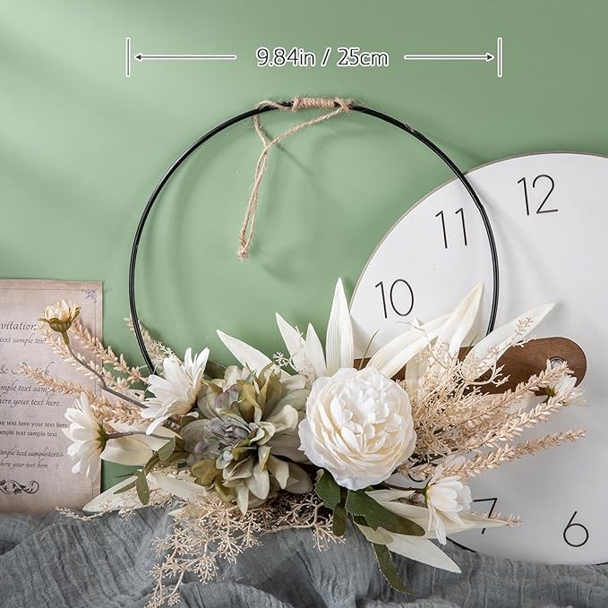 • ?【Size】: This beautiful wreath is round, the round wreath represents unity and eternity. The diameter of the metal hoop is about 9.84inch/25cm. It is very suitable for indoor and outdoor decoration, to meet the general scene layout, please evaluate before buying.