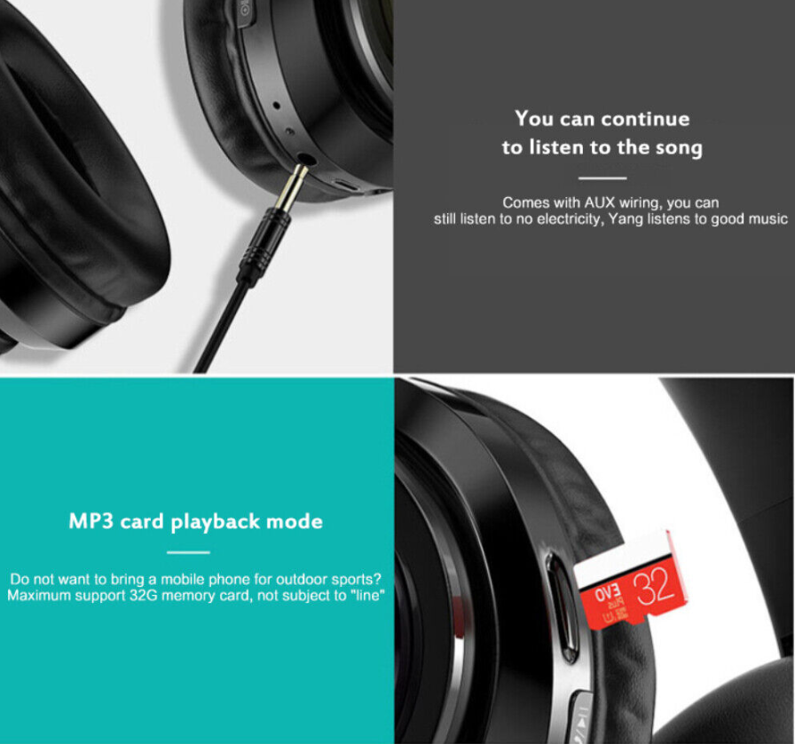 headsets have several options for listening enjoyment. Built in TF card slot and you can use a TF/Micro SD card with loaded MP3 music and listen to the songs directly on your headsets.