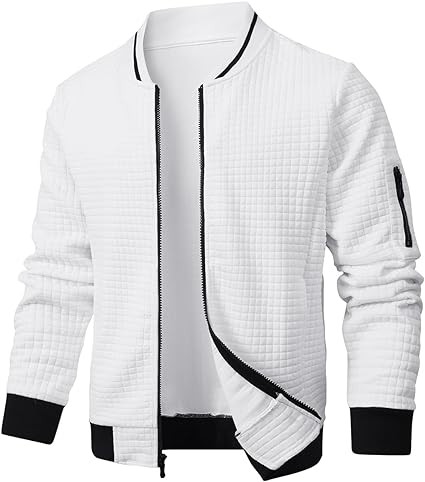 • 【STYLISH DESIGN】: Mens Casual Jacket designed with a full zip, ribbed hem and cuffs, left arm with decorative zipper and 2 side pockets on the front. Lightweight Jackets featured with 3D waffle pattern quilted design, more stylish and stereoscopic.
