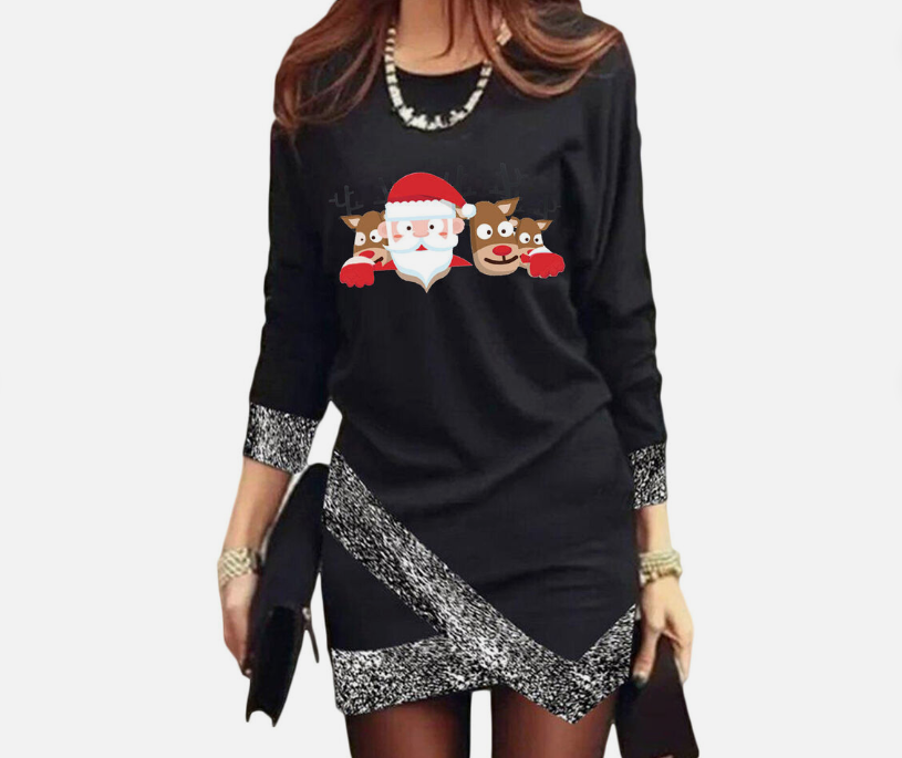Women's Fashion Leisure Christmas Round Neck Long Sleeve Irregular Hem Dress