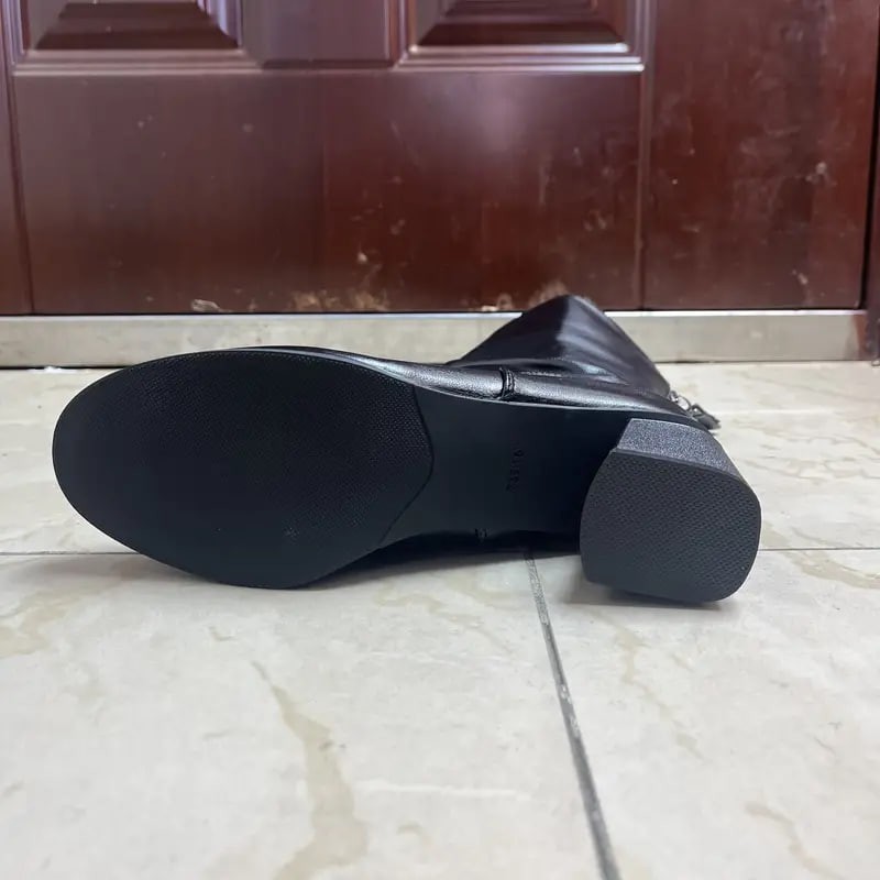 womens solid color boots back zipper chunky heel casual soft sole boots mid calf versatile winter shoes details 5womens solid color boots back zipper chunky heel casual soft sole boots mid calf versatile winter shoes details 5