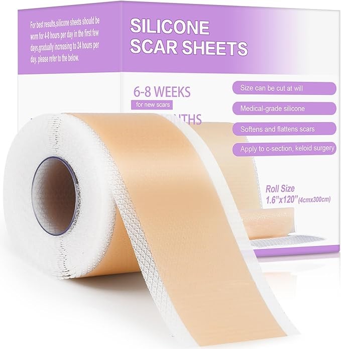 • 4 Steps to Reduce Scar: Clean and dry the scar, cut the silicone scar tape and peel off the backing layer before applying it to the scar and slightly pressing it. For optimal results, adhere to use for 6-8 weeks for new scars and extend to 3-4 months for old scars.