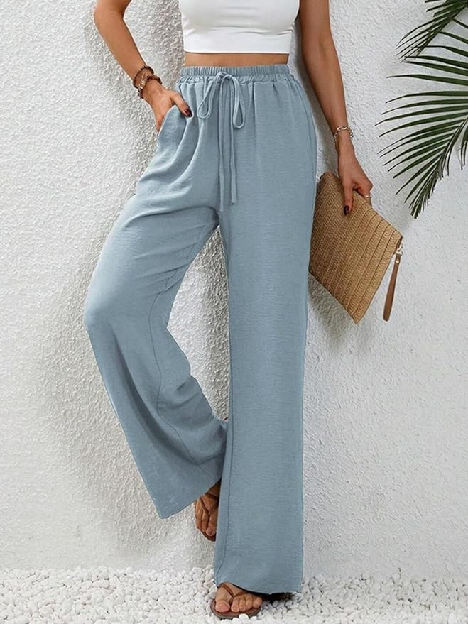 • FEATURES: Linen Pants for Women, Elastic Waistband with Decoration Drawstring, Two Side Pockets, Wide Leg, Solid Color, Relaxed Fit Pants. Women Loose Pants/Casual Pants for Women/Work Pant