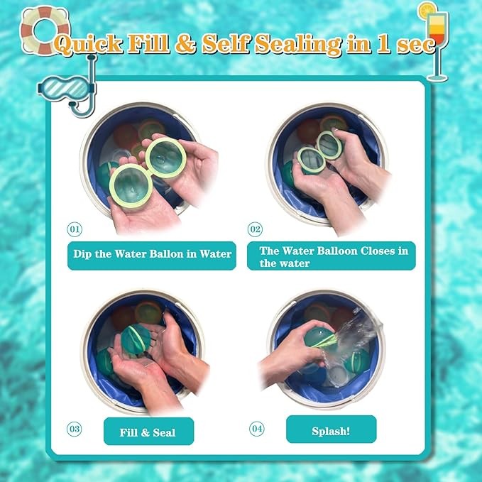 • 【Quick Fill Design】YOTOKAO Water balloons are designed for quick filling and self-sealing, allowing you to fill up with water in seconds and automatically seal, making them easy to use and instantly enjoy summer fun.