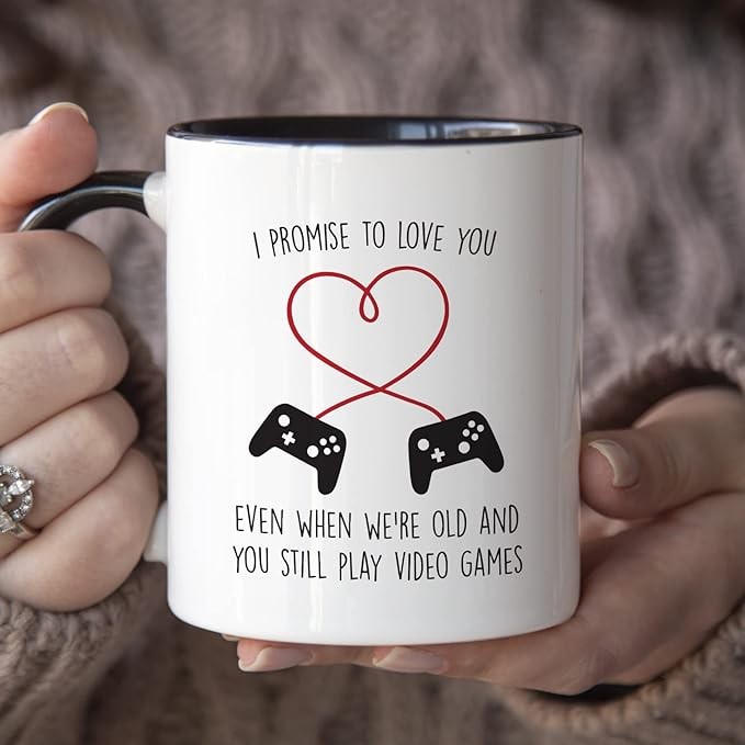 YouNique Designs Gaming Mugs for Him - Portable Coffee Mug 11 Oz, PC Gamer Gifts for Men, Gaming Stuff, Gamer Mug, Gaming Gifts for Men, Gamer Boyfriend Gifts for Gaming Boyfriend (Black Handle)