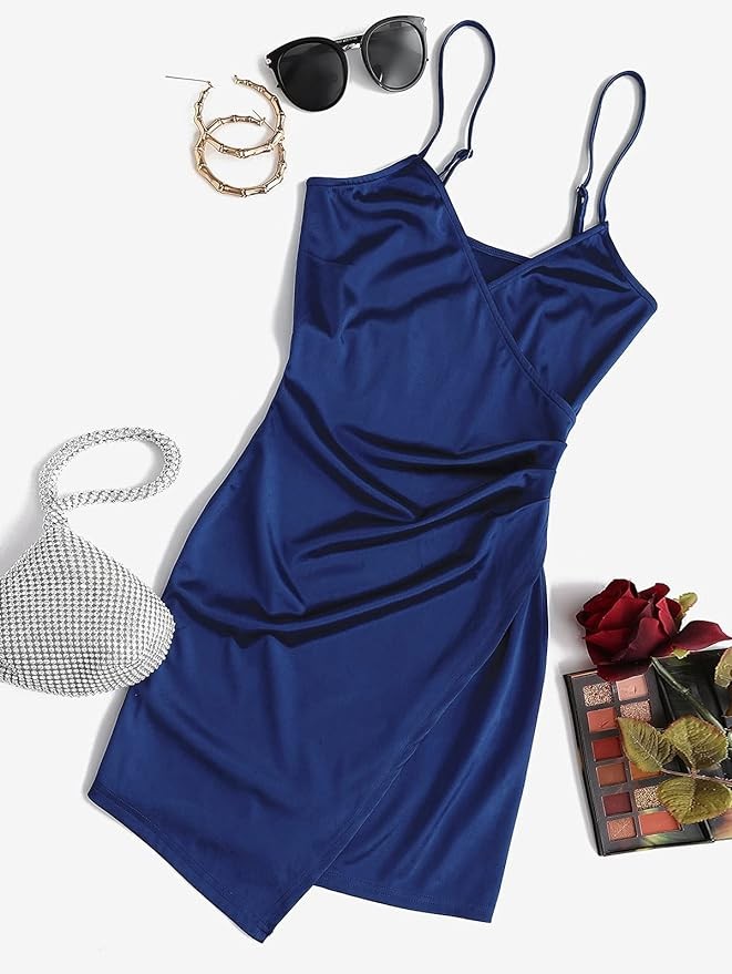 • Style: Step into something sultry in this curve-showing mini dress that boasts a slightly draped front, adjustable&slender straps to accent the shoulders, and a sheeny fabric that stuns anywhere and anytime.